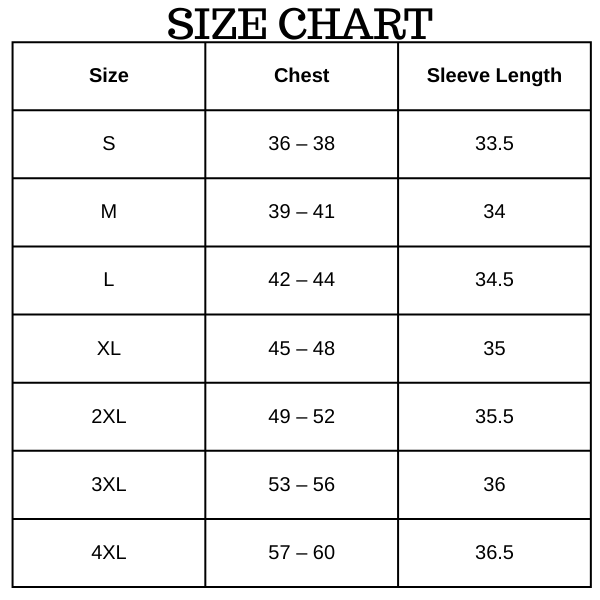 Size Chart (inches):