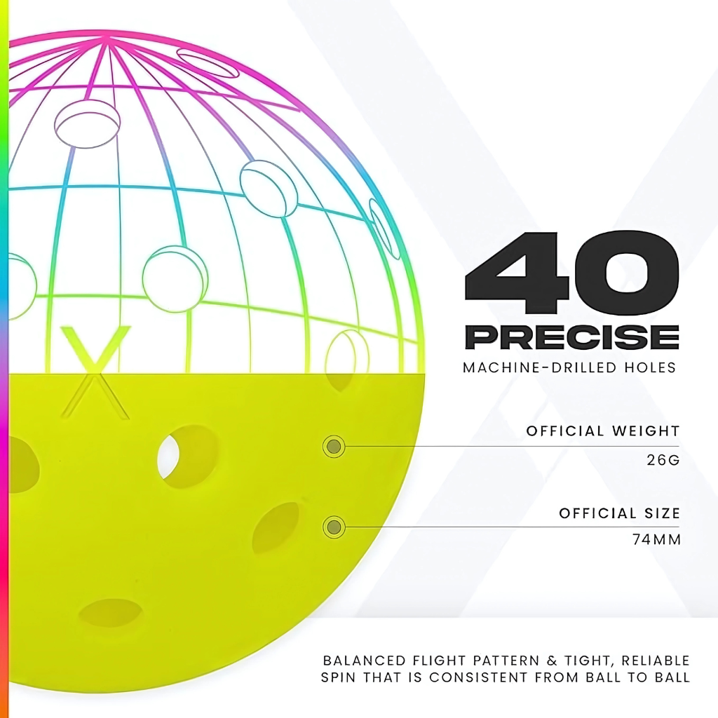 - Stable flight: 40 hole pickleballs pattern aids true aerodynamics.