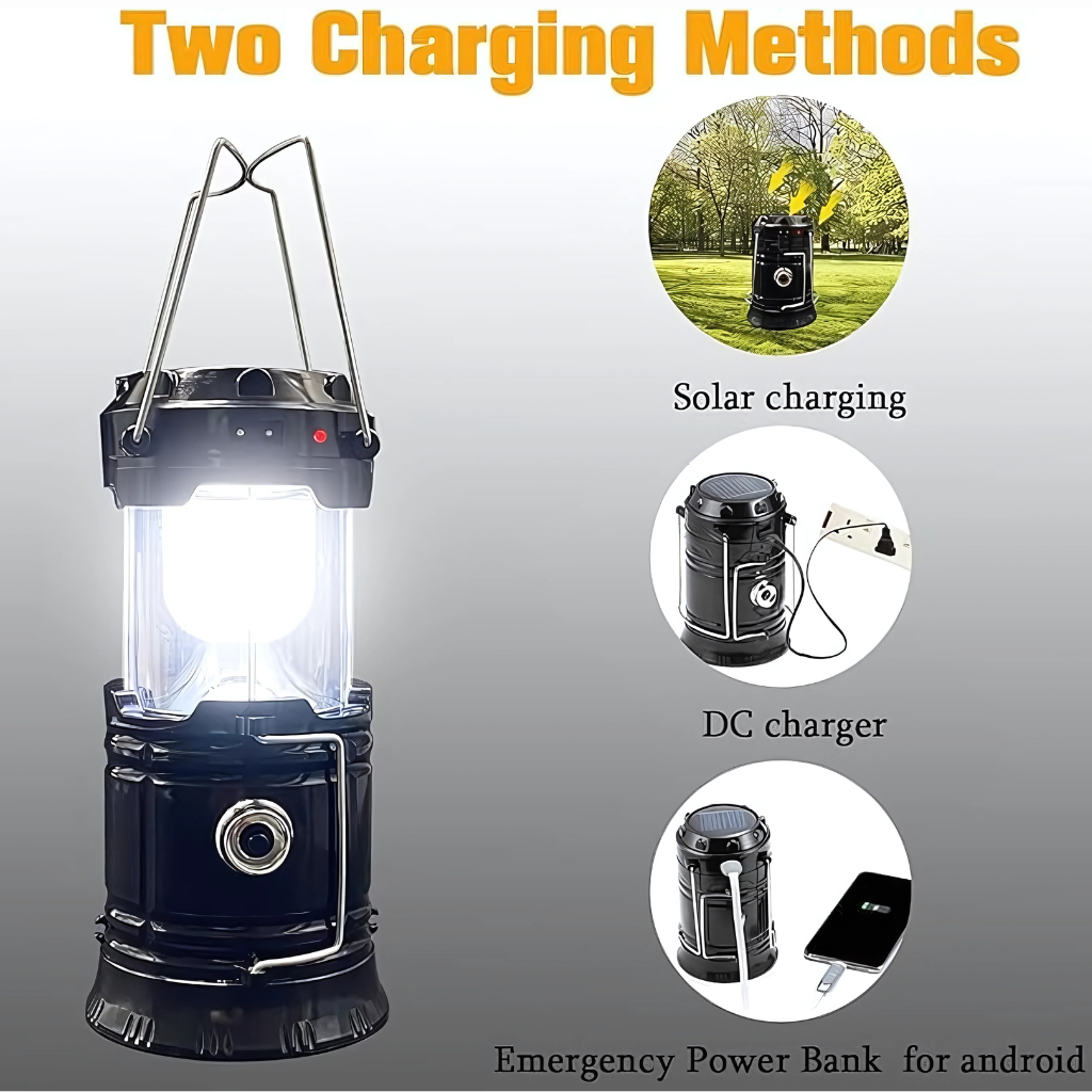 Each Solar Rechargeable Lantern supports two energy inputs. The upper section includes a solar panel that charges the internal battery during daylight. In addition, a USB input allows for direct charging from power banks, wall plugs, or vehicle adapters.