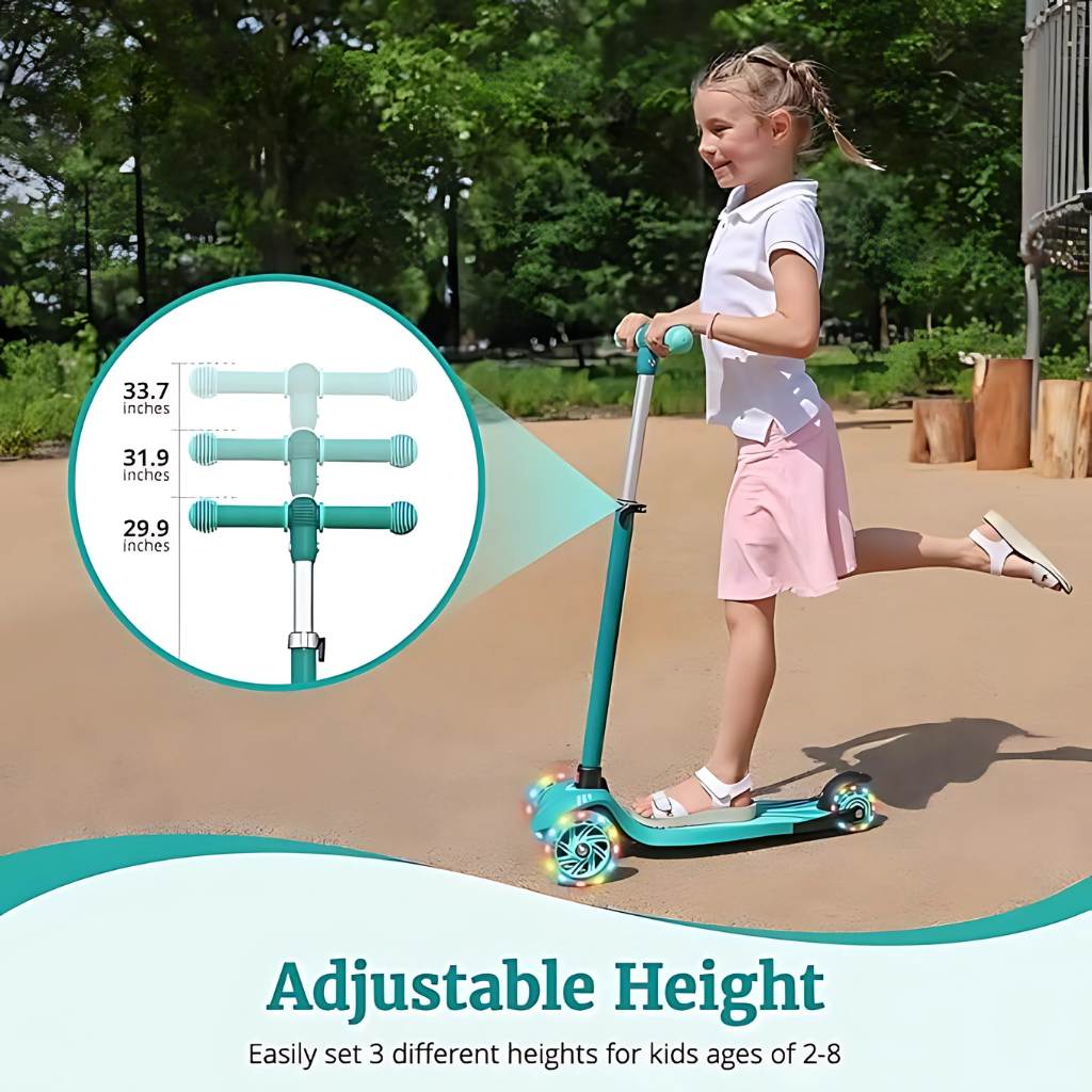 The Adjustable Handle Scooter supports growth over time. The handlebar height includes three fixed positions, which allow families to adjust the scooter as needed. This feature helps reduce the need for multiple products as kids grow.