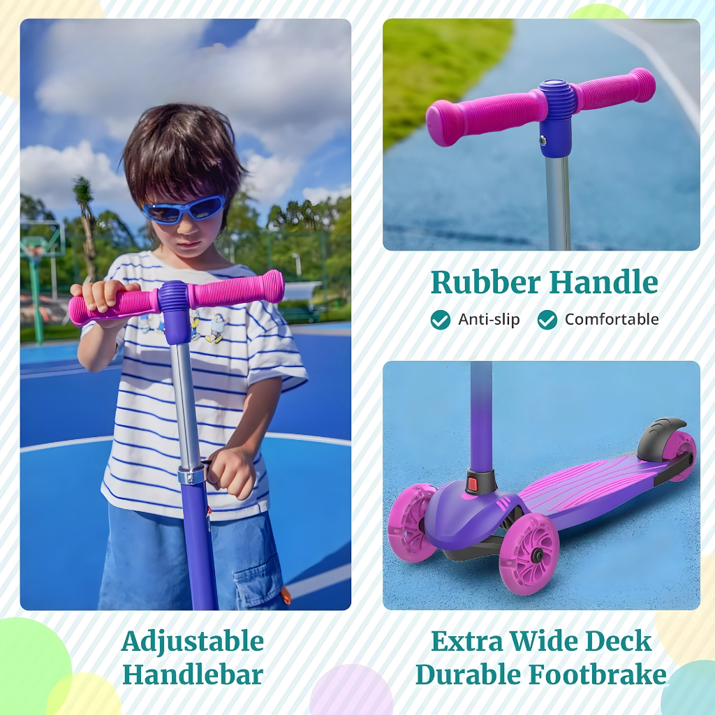 Three Wheel Kids Scooter focus on upright design, grip, and rotational safety features makes it a go-to choice for early-stage scooter use.
