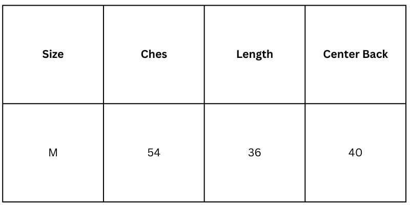 Size Chart (inches):